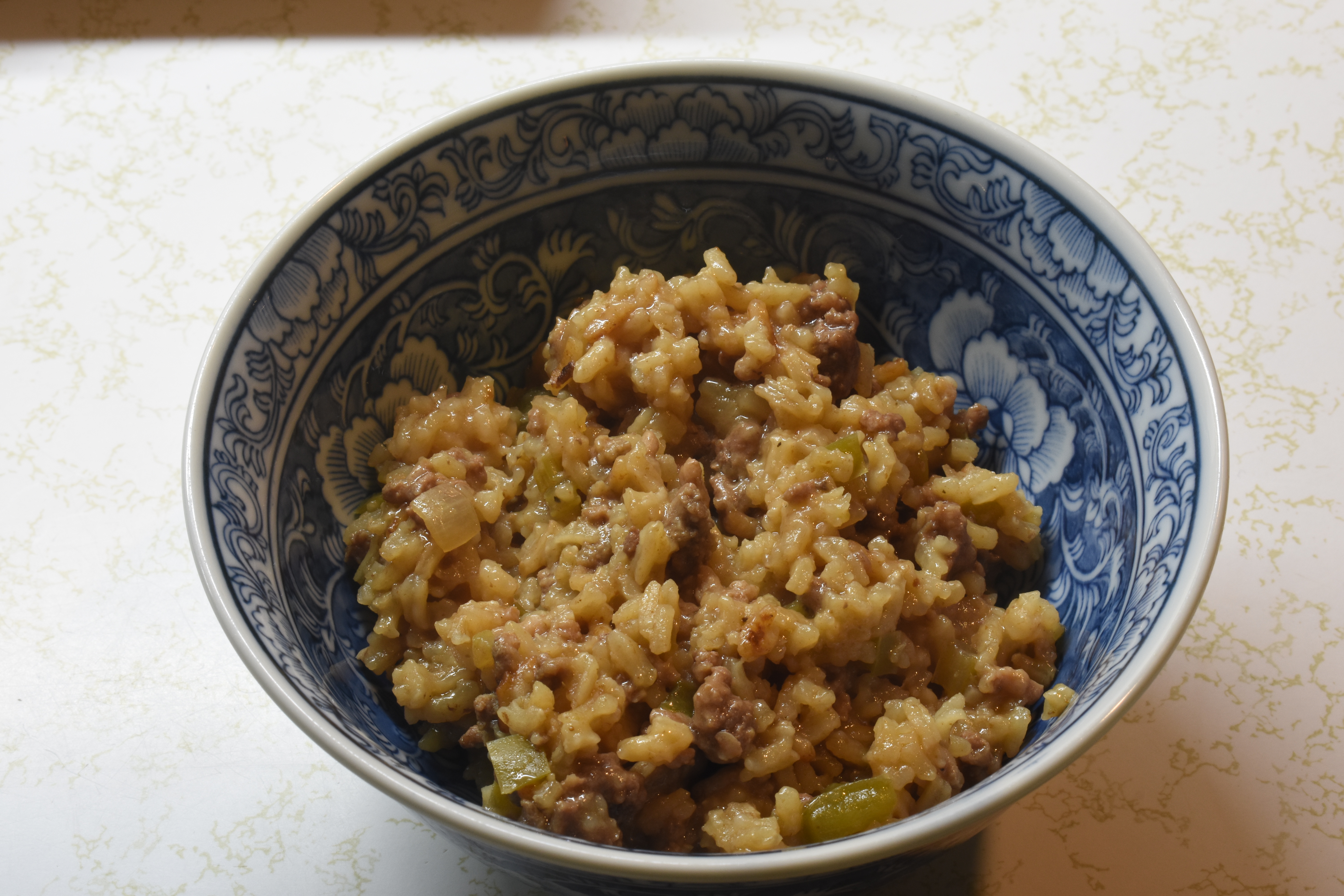 This is a dish that calls for ground lamb. Lamb can have a gamy flavor and lots of herbs are used to offset the gaminess. When using ground beef, you can tone back the herbs to half of the recipe of using lamb. There was no ground lamb at the market this time, so I bought lamb stew meat and ran it through the meat grinder.