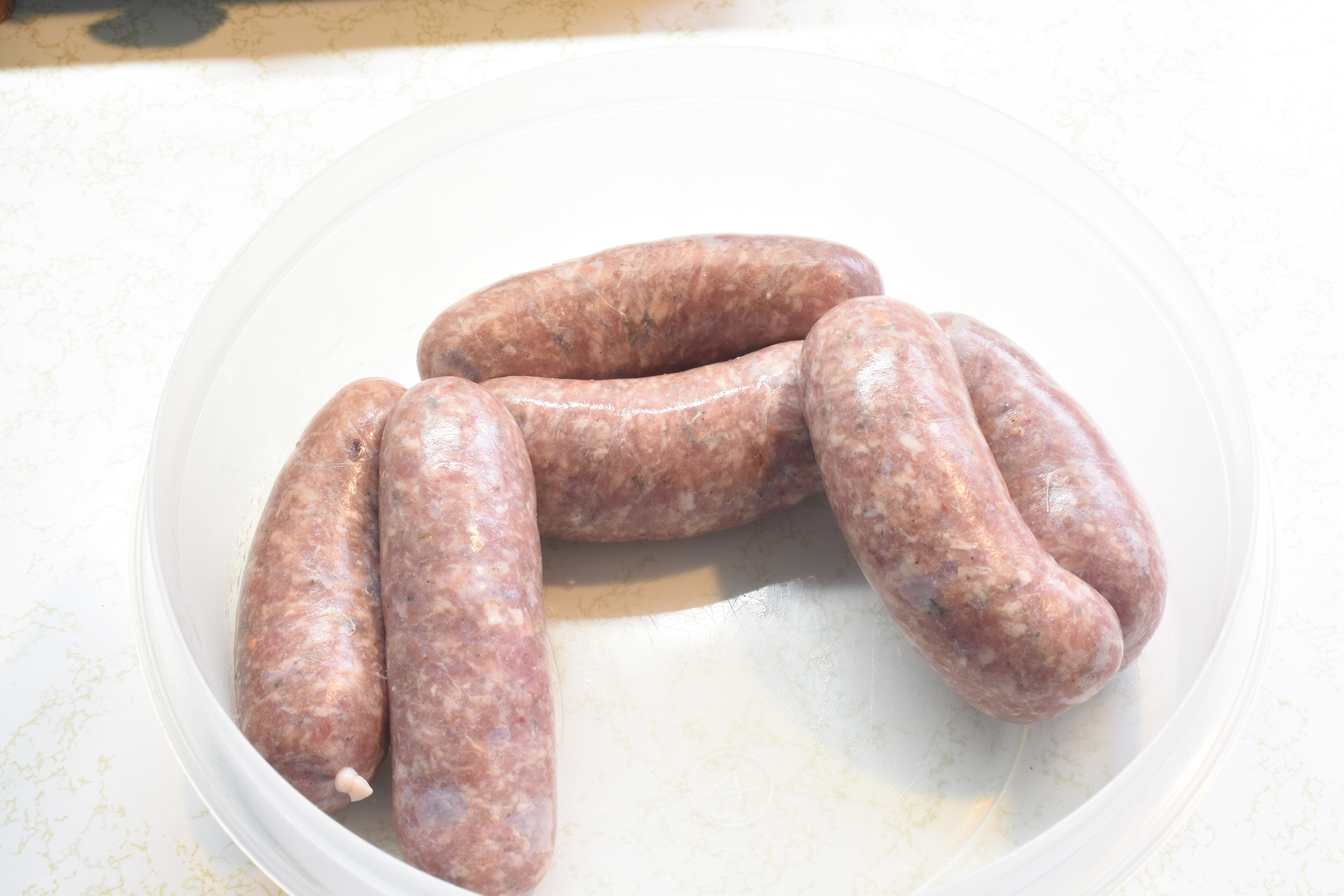 Prepared with a KitchenAid Mixer with grinder and sausage making attachments.