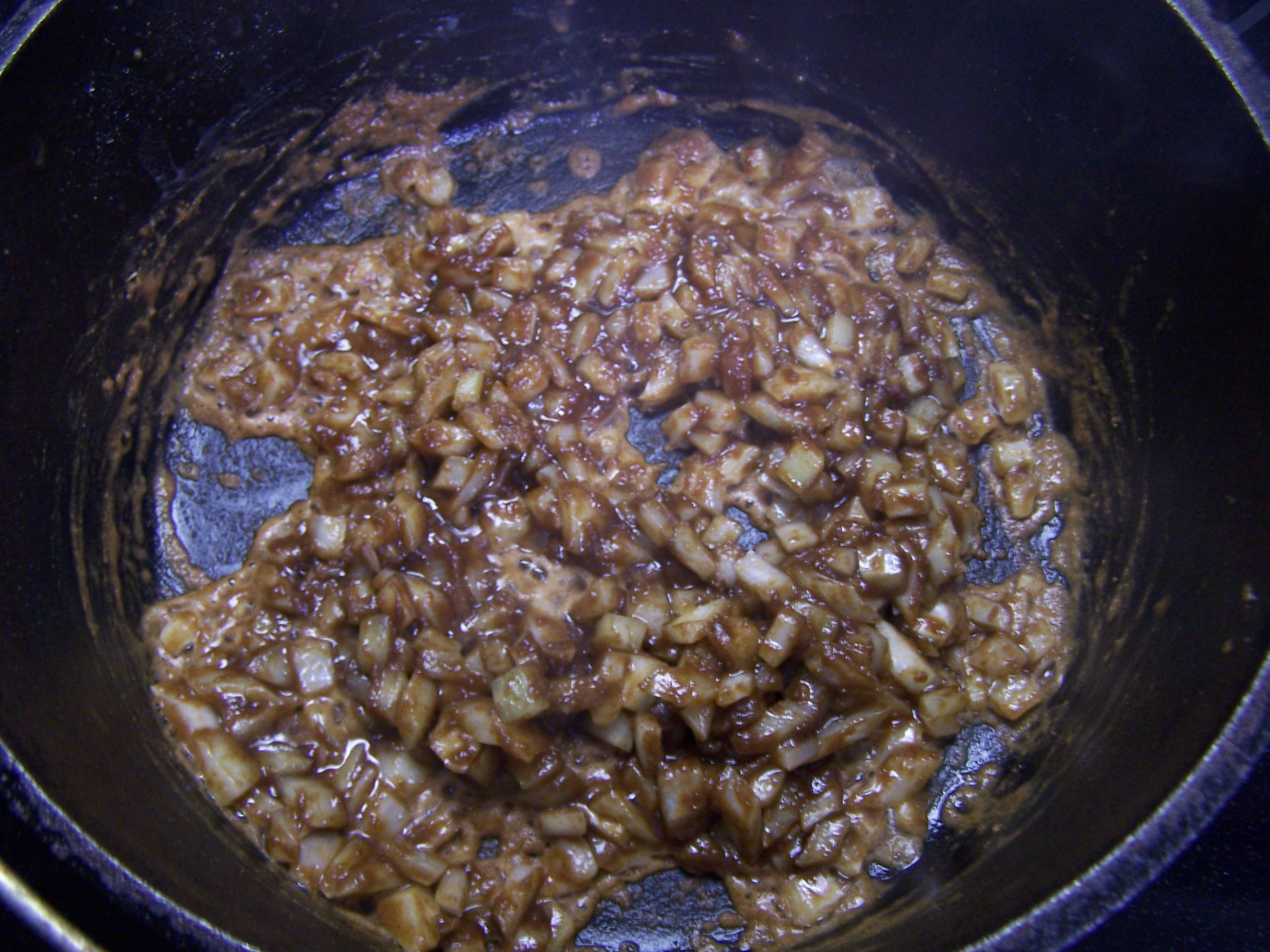 Whisk- pause-whisk-pause until the flour turns oak color…(do not burn flour or you will need to start over)