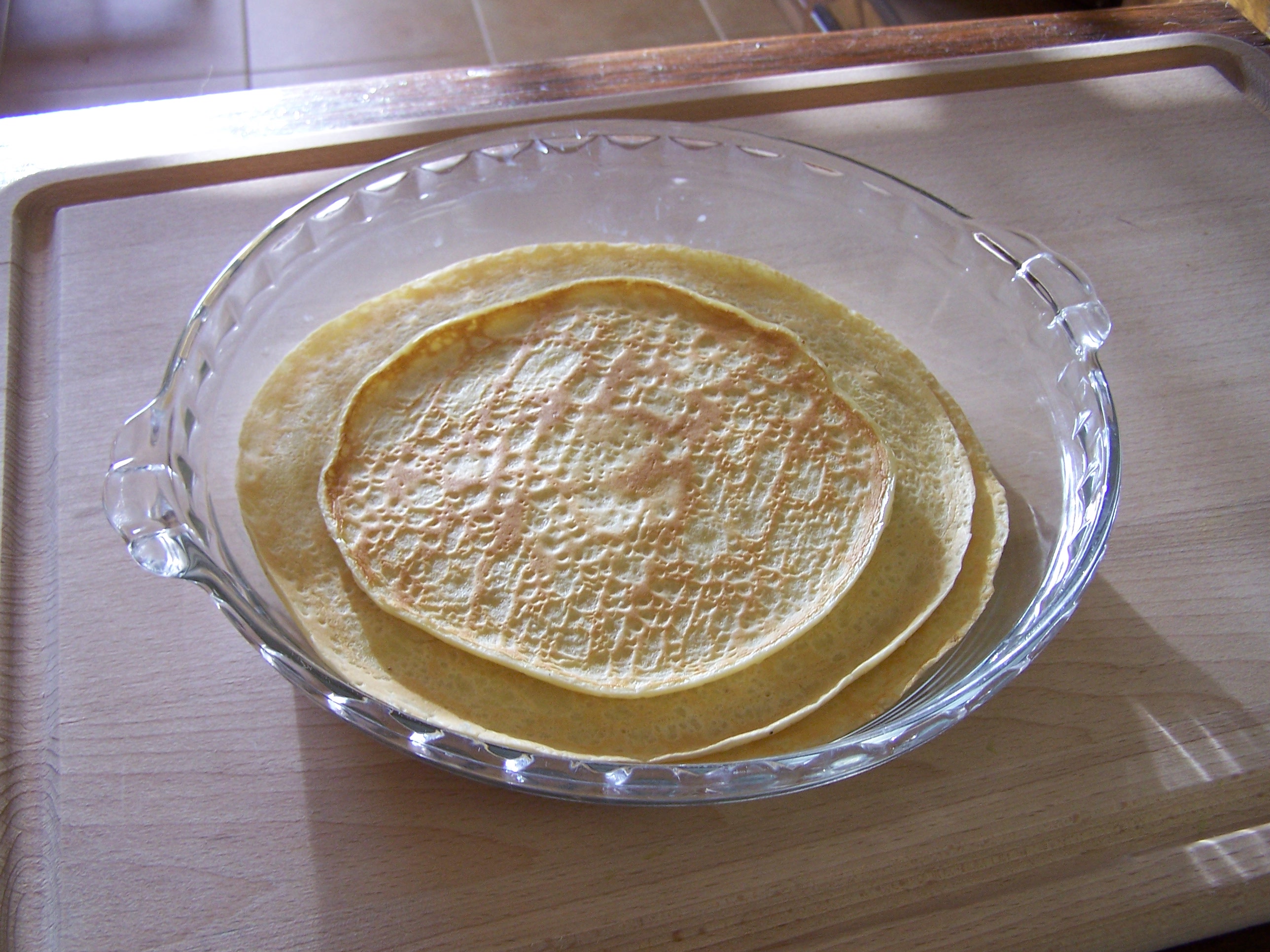 Mix all in a bowl. Pour ¼ cup in a 6 or 8 inch non-stick pan and cook for a minute or two on medium high heat. Flip, cook for 30 seconds and slide on a plate.