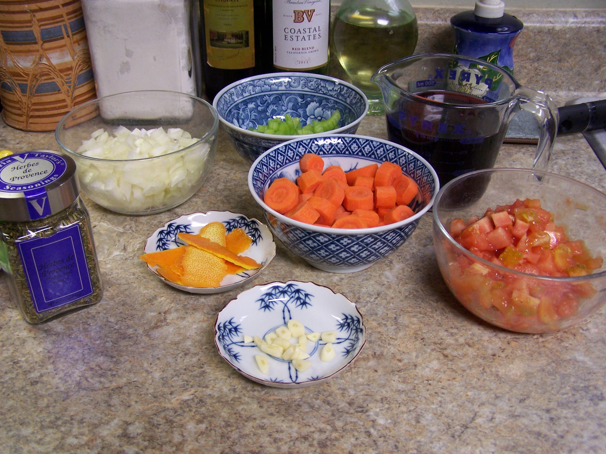 As it turns out, for me Daube de Boeuf Provençal is the easier of the two dishes to make b/c I have a crock-pot and a propane BBQ pit.