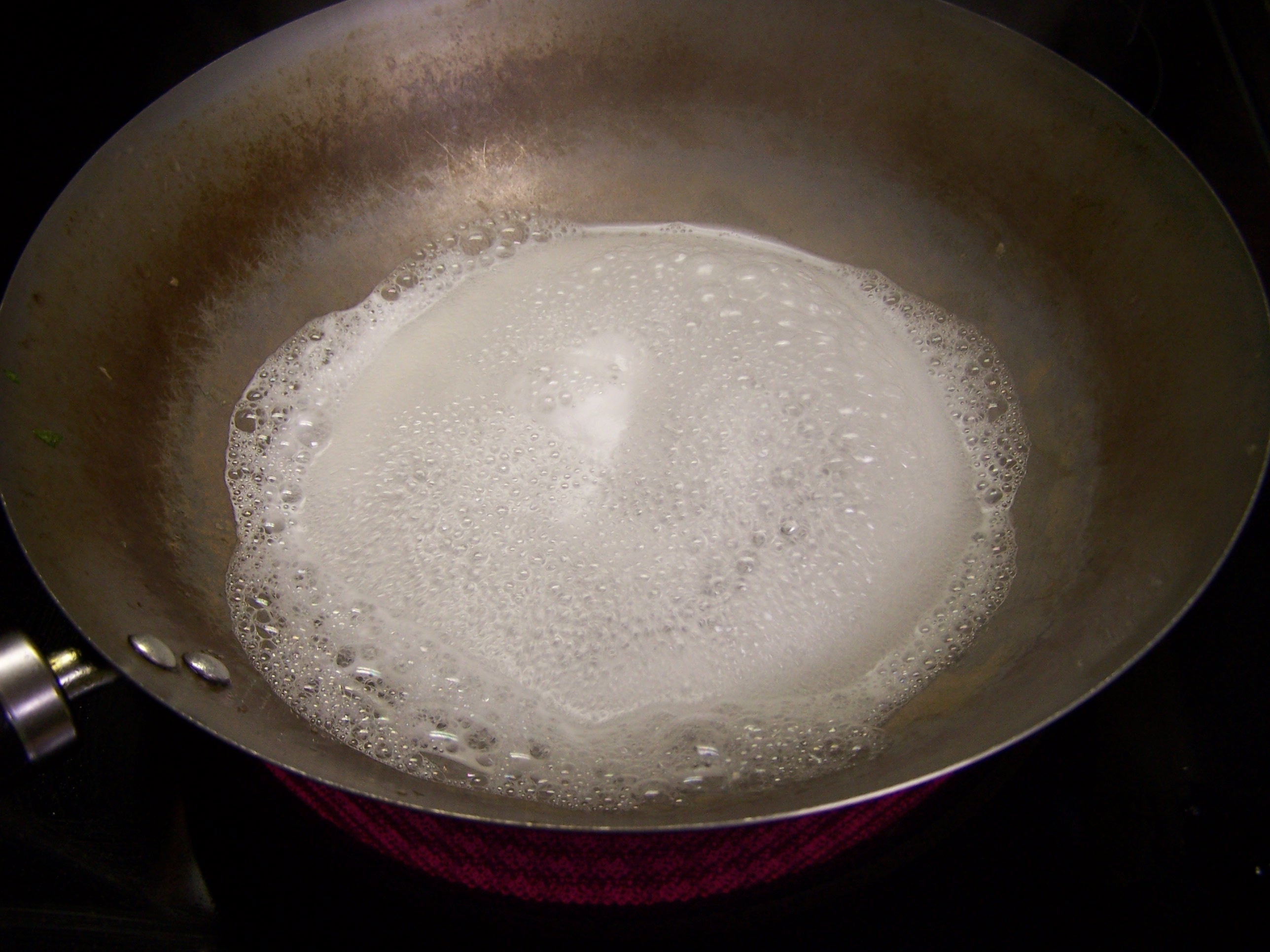 After, the best way to clean the wok is to get it hot and then add soapy water, then rinse.