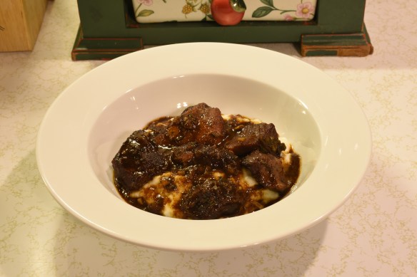 Combine sauce and whisk. Add the meat and coat. Place in an oven proof pan, roast at 325⁰ 1 hour, turn meat over, cook another hour or until tender. Serve over Ricotta Mashed Potatoes.