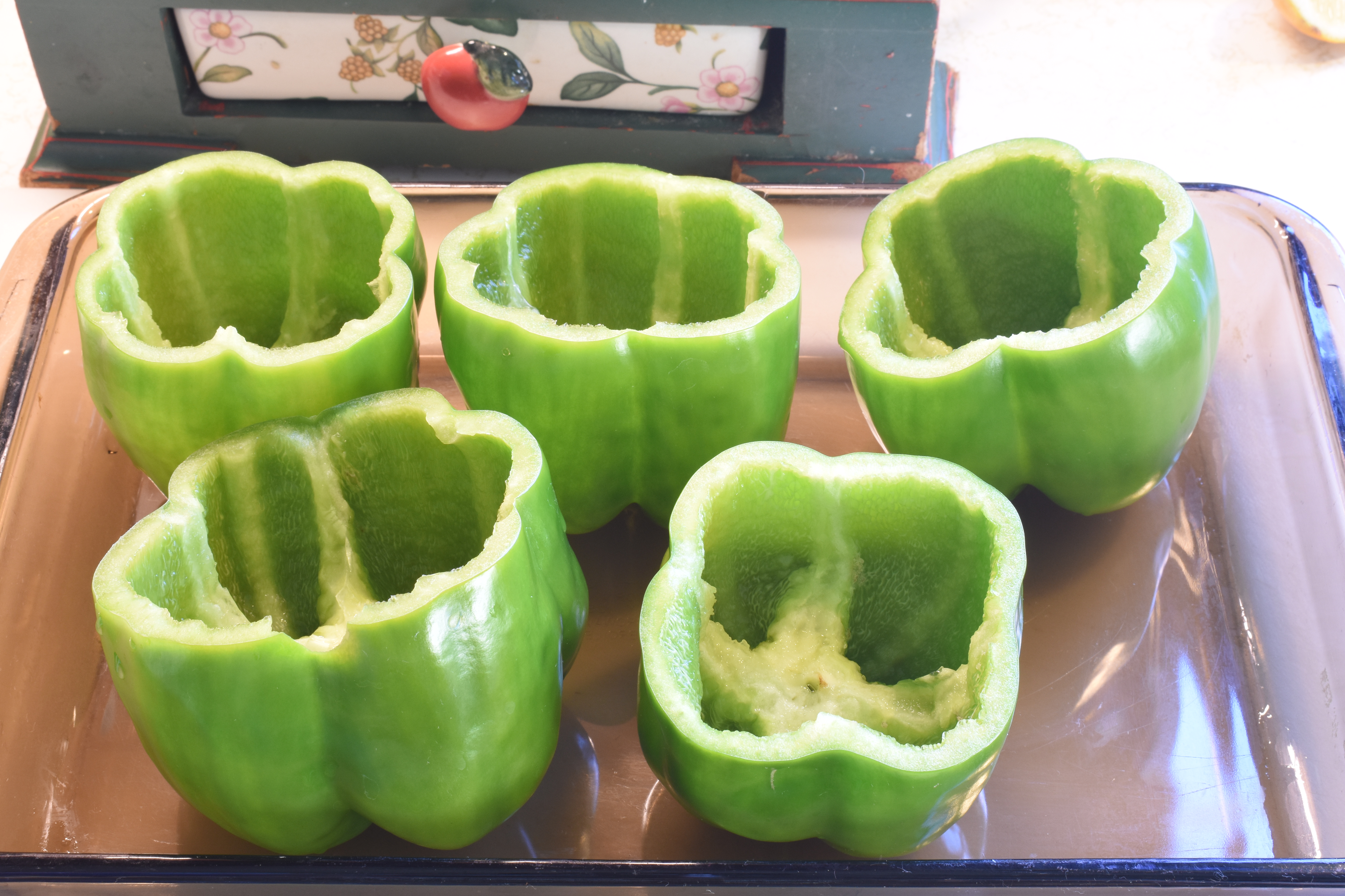 5 large size green bell peppers (from the garden)