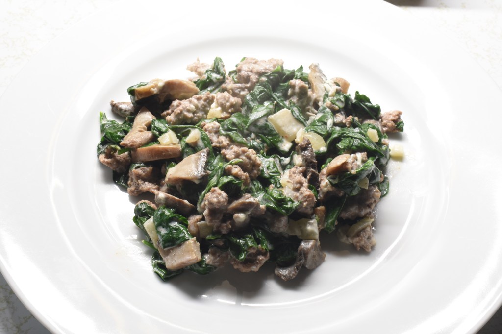 In the pot add olive oil add the chopped onion and sauté 3 minutes, add the mushrooms and sauté 4 minutes.