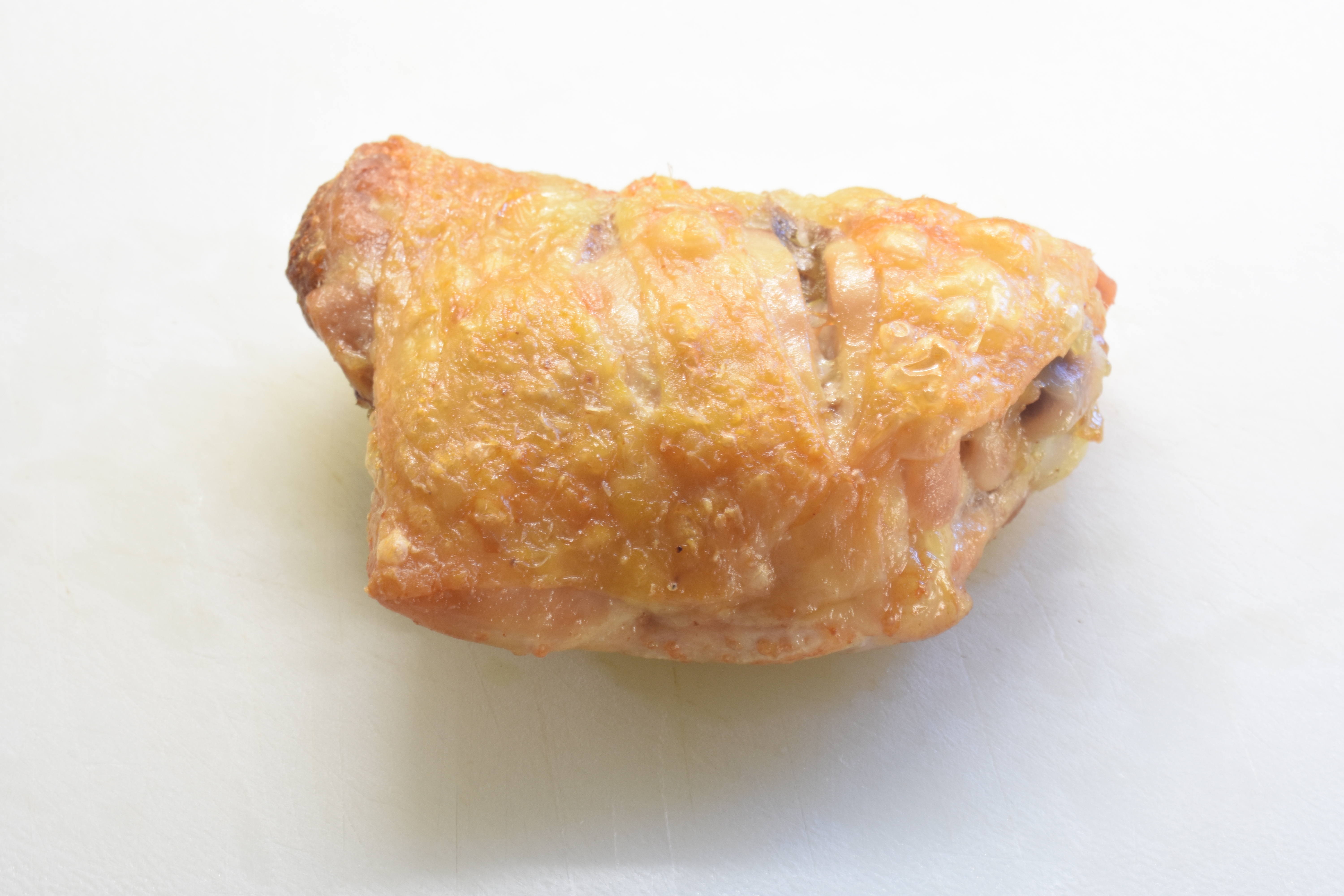Trim the skin. Cut 2 slices into the skin side of the chicken perpendicular to the bone. This helps the chicken cook faster. Cook in oven at 450° for 1 hour. Remove and cool. Save the chicken juice for the Vinaigrette. When cool cut the chicken off the bone and into pieces to top the salad.