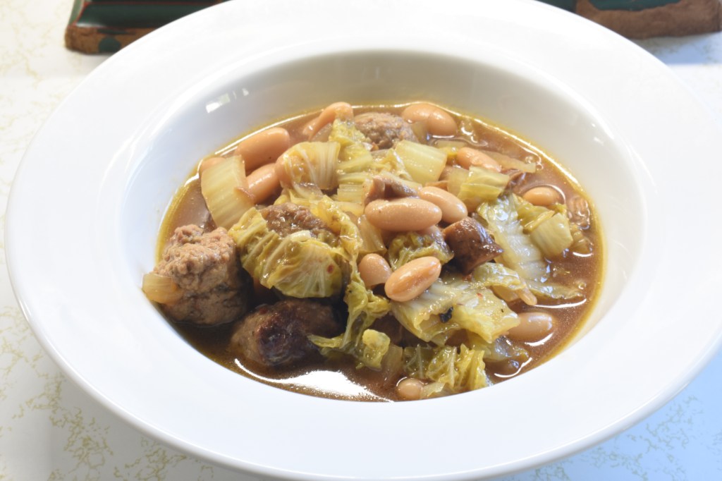 ¼ Napa cabbage cut in half longways and then ½” sideways