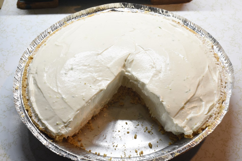 In a large bowl using a hand mixer and mix all the ingredients except the cool whip and small amount of reserved lime zest. After all is whipped smoothly add the cool whip, fold in and then use the hand mixer and make smooth. Add to the 10” pie crust. Sprinkle with reserved zest. Place covered in the ice box until cold (2 hours).