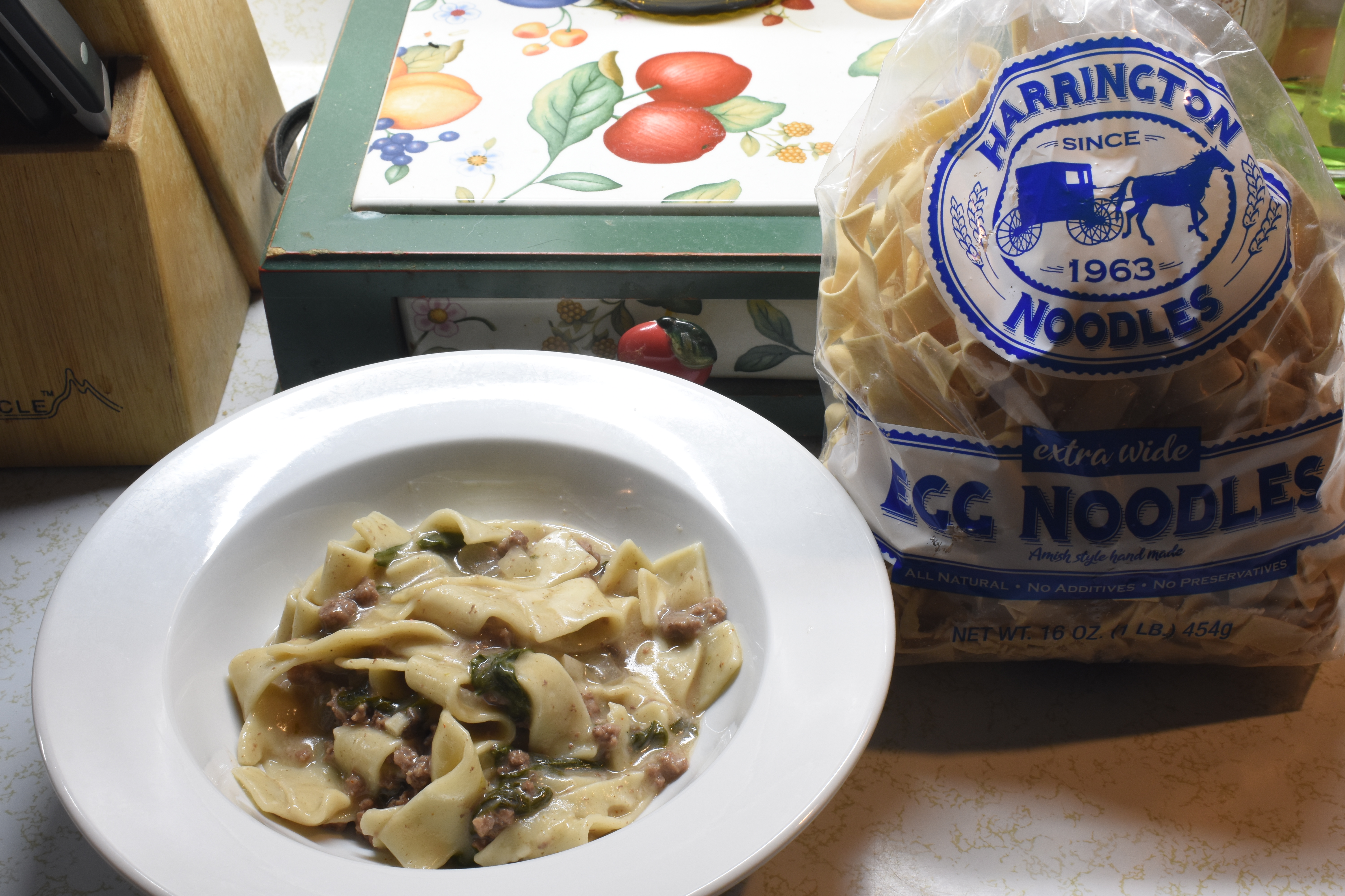 2 cup of uncooked Amish extra wide egg noodles (Harrington Brand)