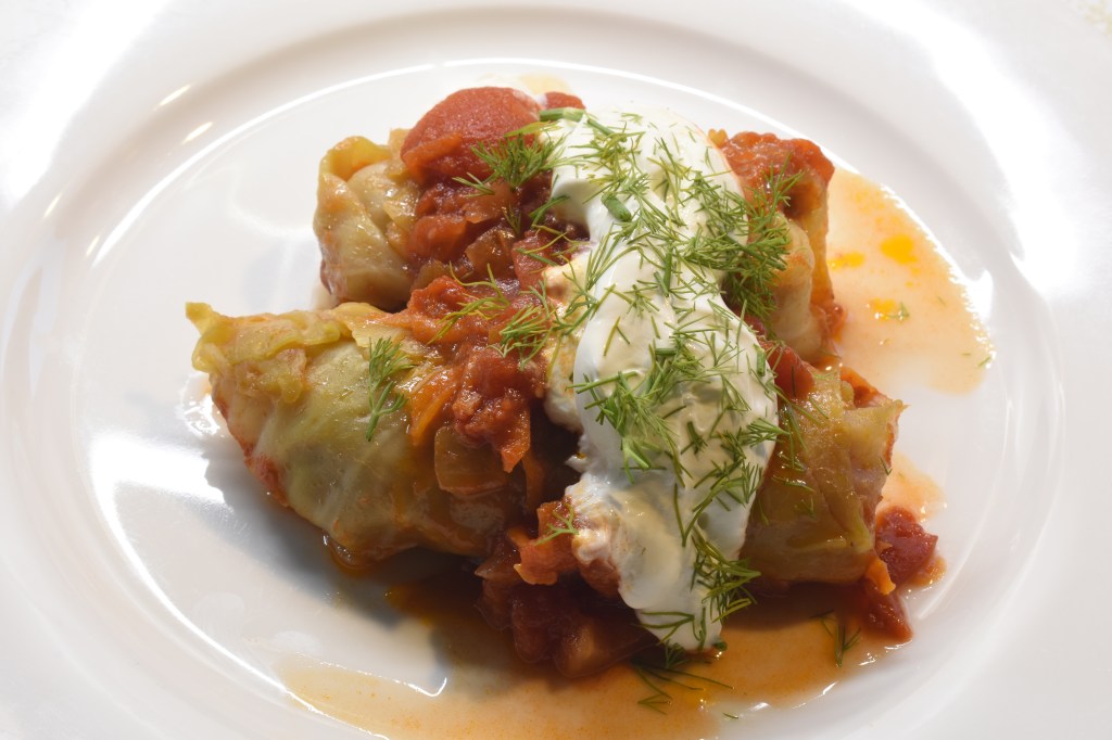 Cooking – Add the rolls in the pan. Cover with the rest of the sauce and a couple of cabbage leaves. Cook covered on 325° in the oven for 60 minutes. The idea is to cover the rolls so that they steam in the oven making the cabbage very tender and easy to cut with a fork. Check the rolls to make sure the cabbage is cooked. Remove the rolls into a cover cookware bowl. Let cool.