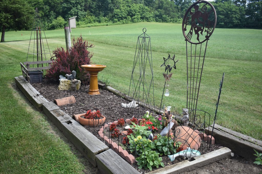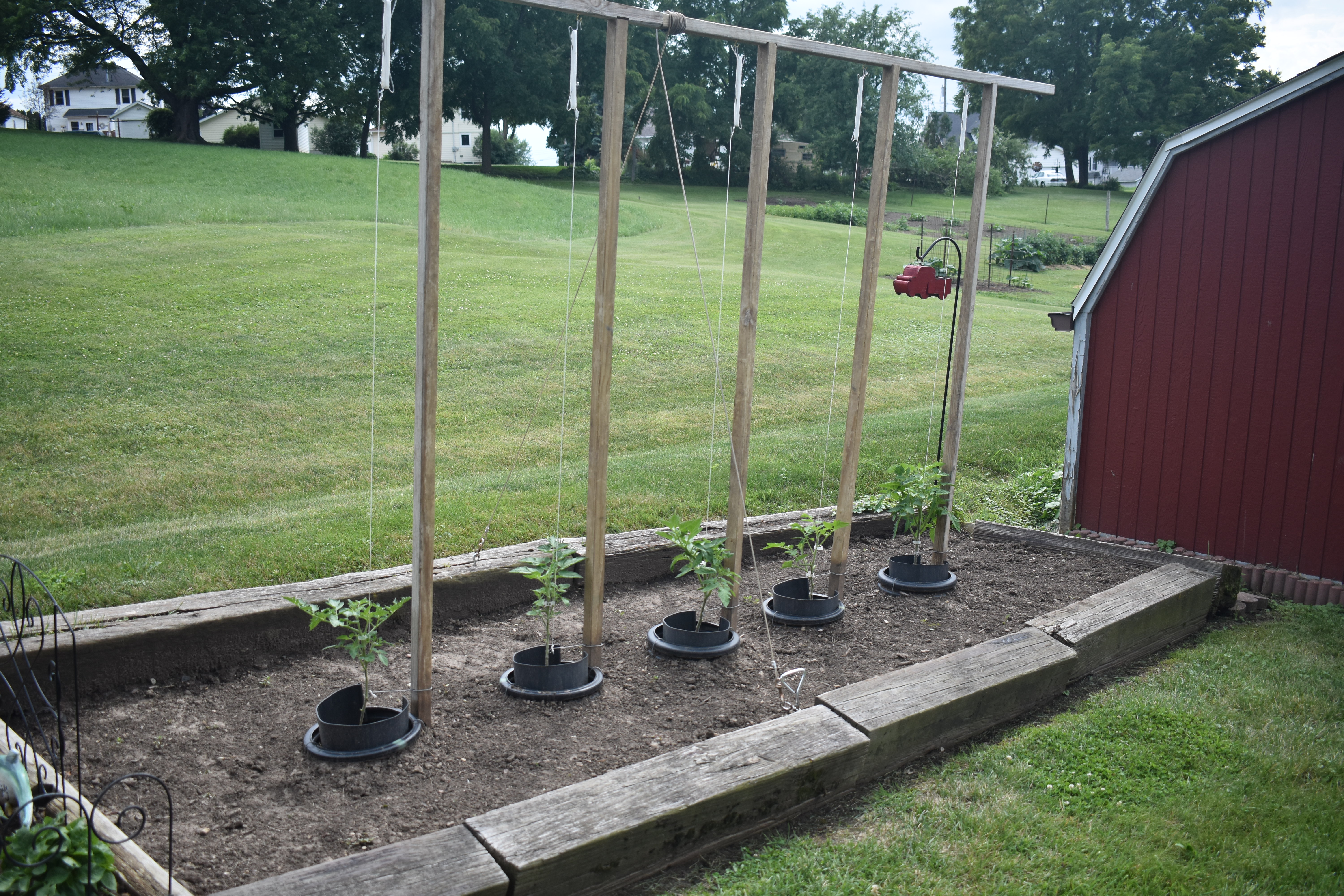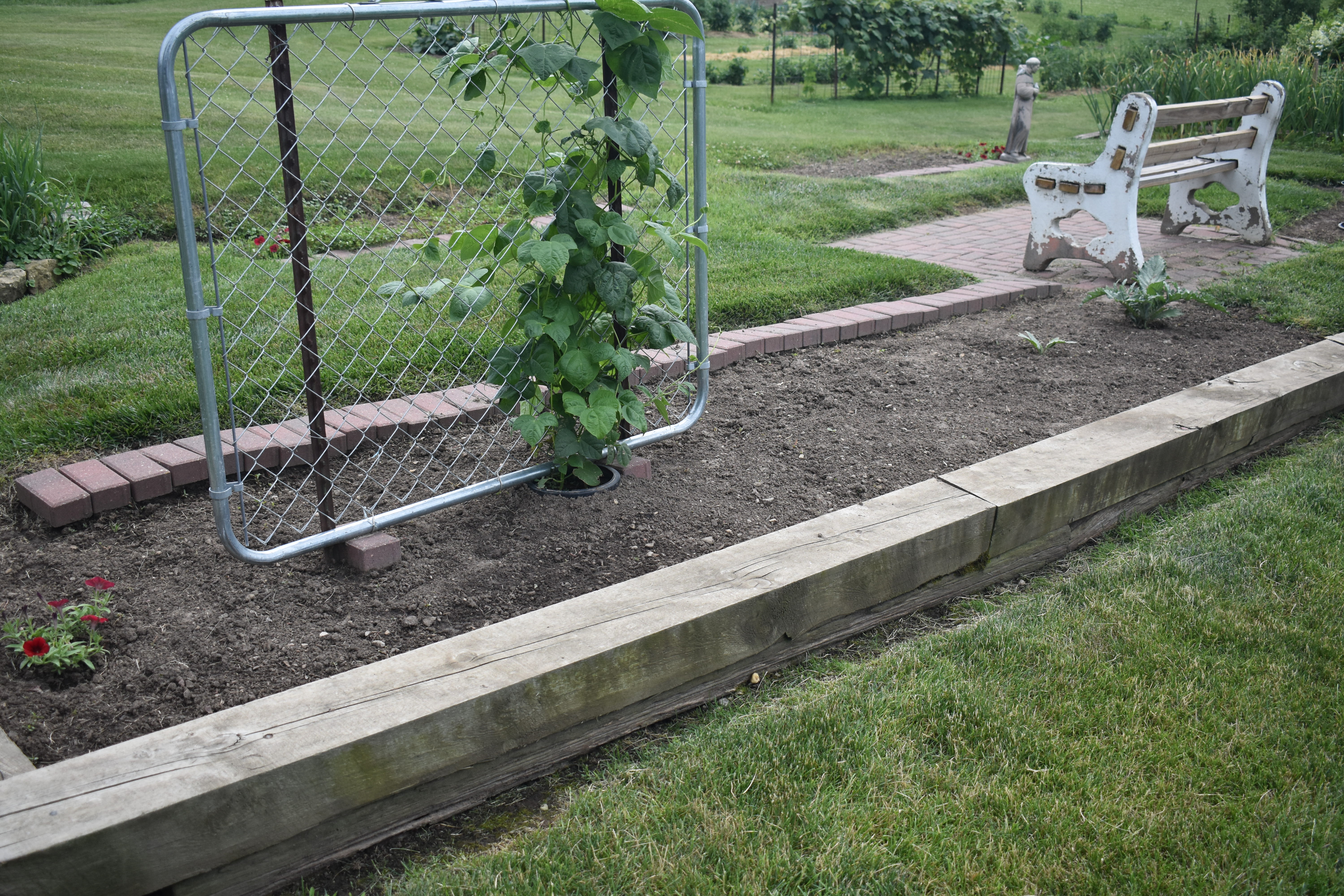 Herb GardenHerb Garden (left to right Italian Basil, Rosemary, Thyme, Lavender, Oregano, Chives, Sage and Thai Basil)Flower GardenSan Marzano TomatoesString Beans and ArtichokesPeppers (Left to right, Tabasco, Jalepeno, Serano, Bell Pepper, Habenero)Garlic
