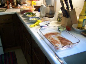 Heat oven to 425ᵒ, Cook fish until done (~8 minutes)